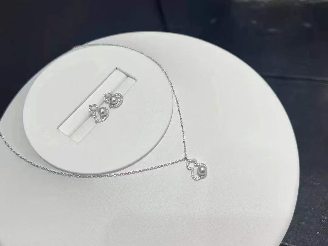 This beautiful set is featured with 5-6mm Akoya pearl, designed with Wulu for good charming.