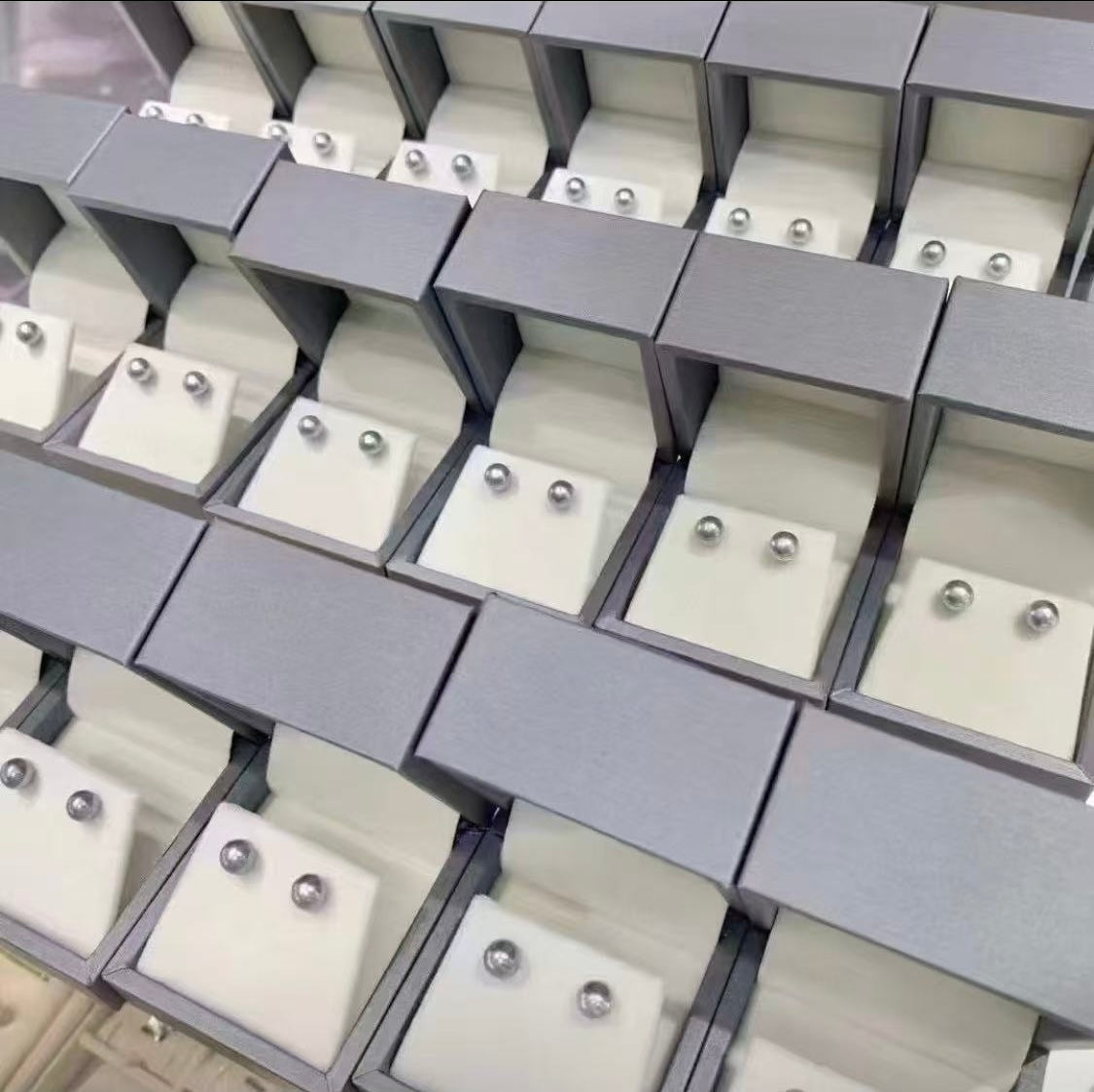 Classic Akoya pearl earrings, wearing like a pure garland falling on the ear, emphasizing the delicate and beautiful mandible contour.